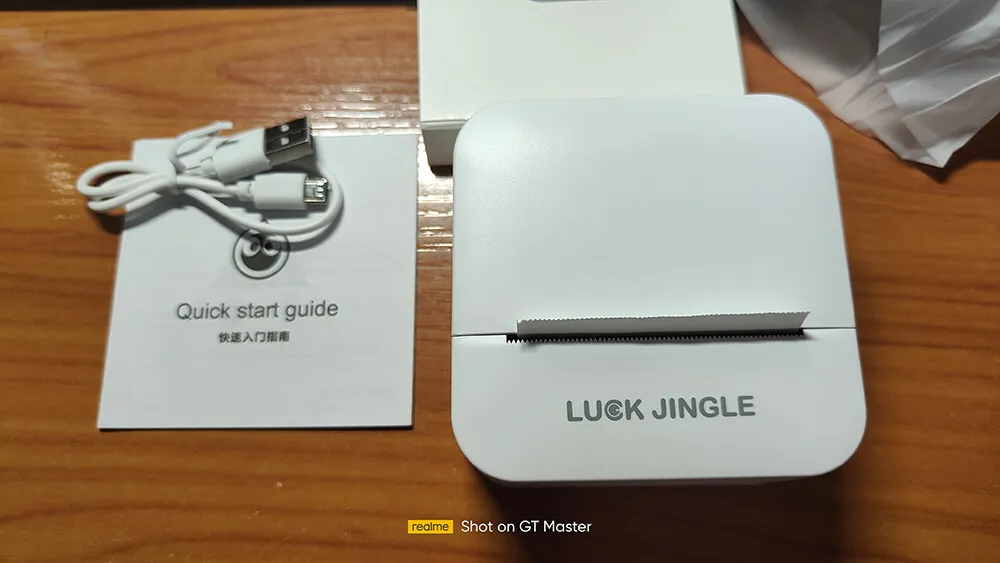 拆开主体包装,里面有打印机,充电线和说明书,老三样。