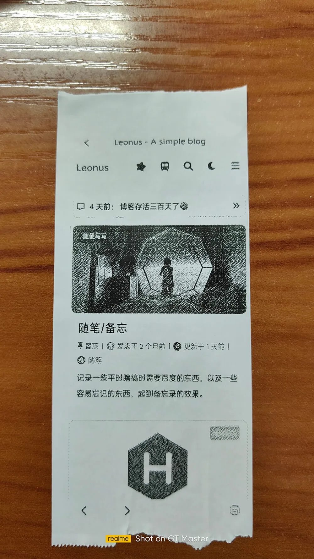 支持网页打印(类似于图片打印),于是打印一张博客图片,打出来还行,缺点后面说 - 自定义文字内容(普通纸)