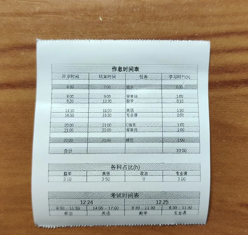 最后打印的当然是时间表,但是因为内容太多且有背景色,打印的不是很理想。后期再试试其他方法看看。