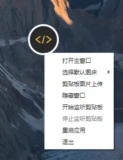 - mini模式。桌面会出现一个悬浮小球,把图片拉到这上面可以上传图片,不需要开大窗。且可以自定义图片。不过我不怎么喜欢应用悬浮球,就没开。