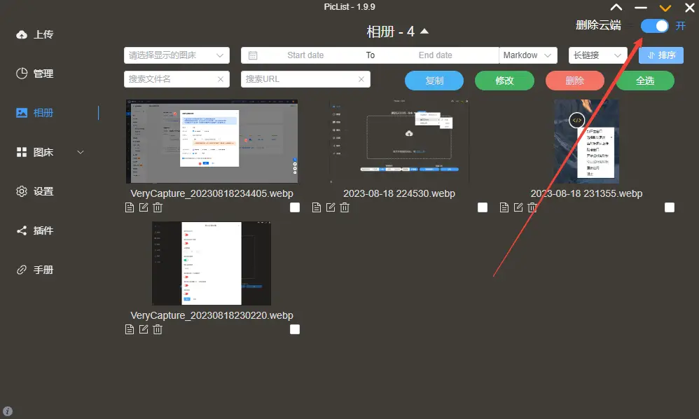 - 在软件里删除图片云端会同步删除,不需要自己再去删除。可选择开启。